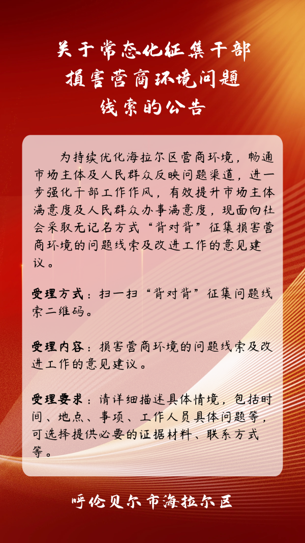 關于常態(tài)化征集干部損害營商環(huán)境問題線索的公告