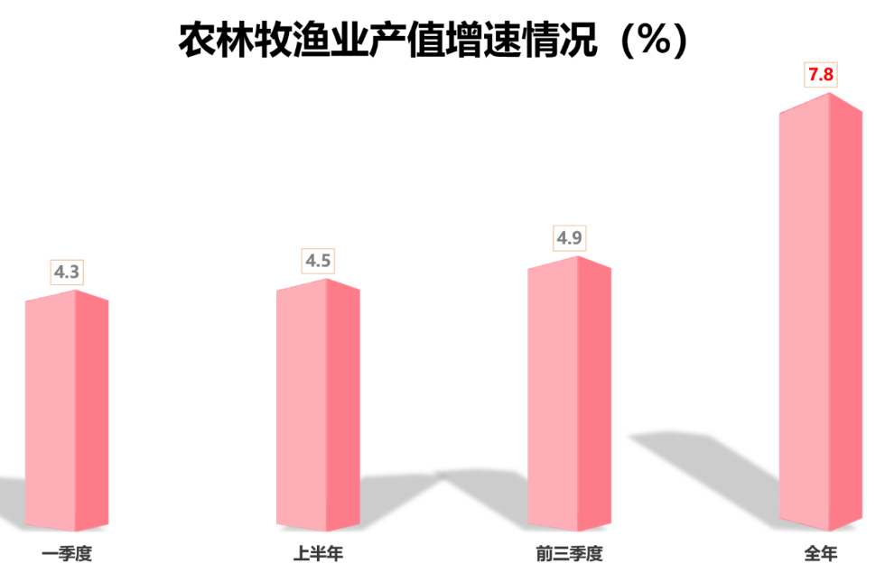圖4農(nóng)林牧漁業(yè)產(chǎn)值增速及占比情況圖