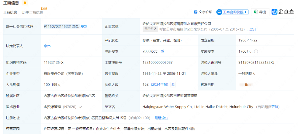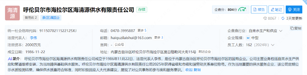 海拉爾區(qū)供水企業(yè)信息
