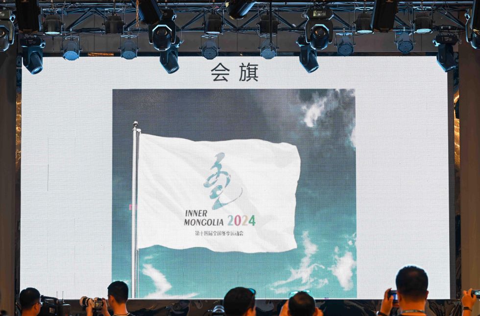 這是在新聞發(fā)布會(huì)上公布的第十四屆全國冬季運(yùn)動(dòng)會(huì)會(huì)旗