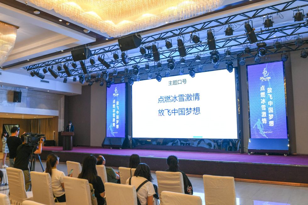 這是在新聞發(fā)布會(huì)上公布的第十四屆全國冬季運(yùn)動(dòng)會(huì)主題口號(hào):點(diǎn)燃冰雪激情 放飛中國夢(mèng)想