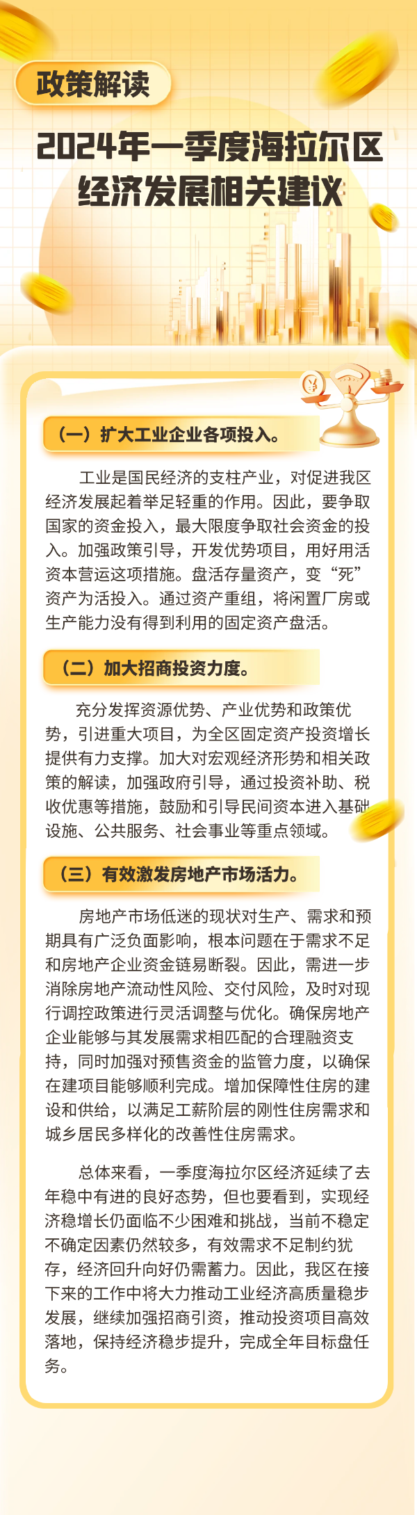 名稱: 【圖文解讀】2024年一季度海拉爾區(qū)經(jīng)濟發(fā)展相關建議 文號: