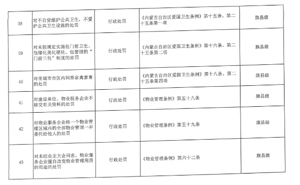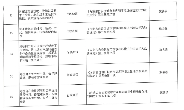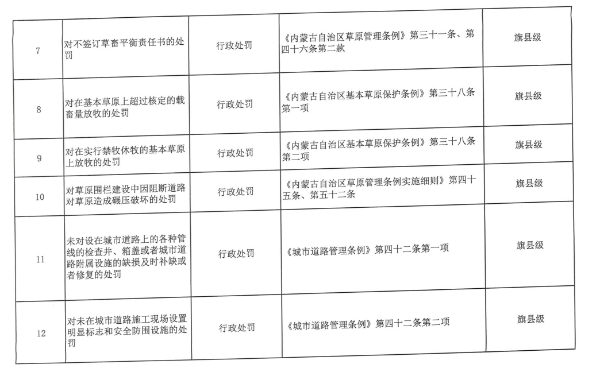 內蒙古自治區(qū)賦予蘇木鄉(xiāng)鎮(zhèn)(街道)行政執(zhí)法權力指導目錄