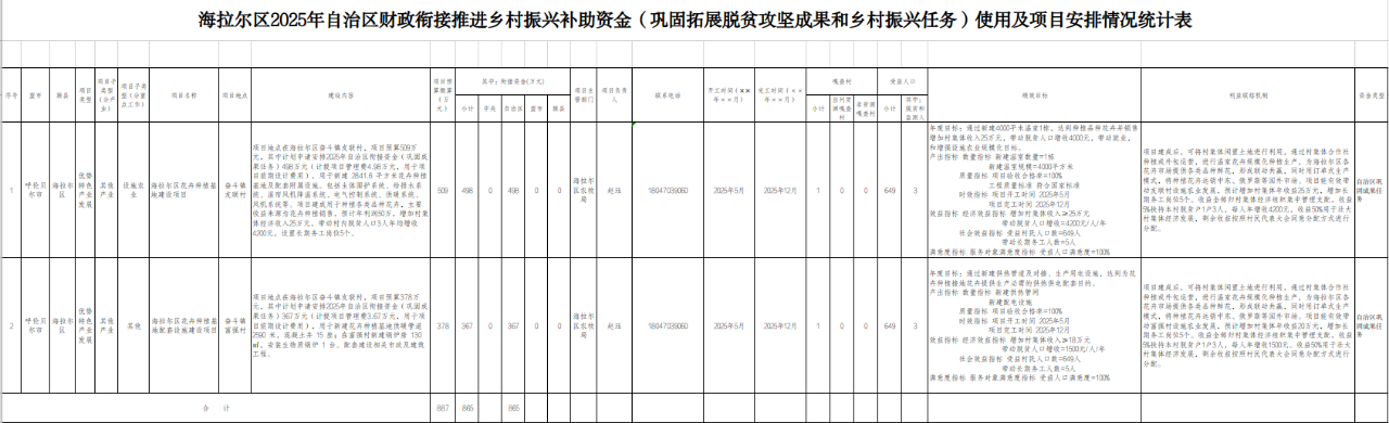 根據(jù)《呼倫貝爾市財(cái)政局關(guān)于下達(dá)2025年自治區(qū)財(cái)政銜接推進(jìn)鄉(xiāng)村振興補(bǔ)助資金預(yù)算的通知》(呼財(cái)農(nóng)〔2025〕93號(hào))、《關(guān)于做好2025年度自治區(qū)提前下達(dá)財(cái)政銜接推進(jìn)鄉(xiāng)村振興補(bǔ)助資金使用管理工作的通知》(呼農(nóng)牧辦發(fā)〔2025〕27號(hào)),上級(jí)下達(dá)我區(qū)自治區(qū)財(cái)政銜接推進(jìn)鄉(xiāng)村振興補(bǔ)助資金(鞏固拓展脫貧攻堅(jiān)成果和鄉(xiāng)村振興任務(wù))865萬元,用于支出鞏固拓展脫貧攻堅(jiān)成果、銜接推進(jìn)鄉(xiāng)村振興和鞏固拓展脫貧攻堅(jiān)成果同鄉(xiāng)村振興有效銜接的其他相關(guān)支出。