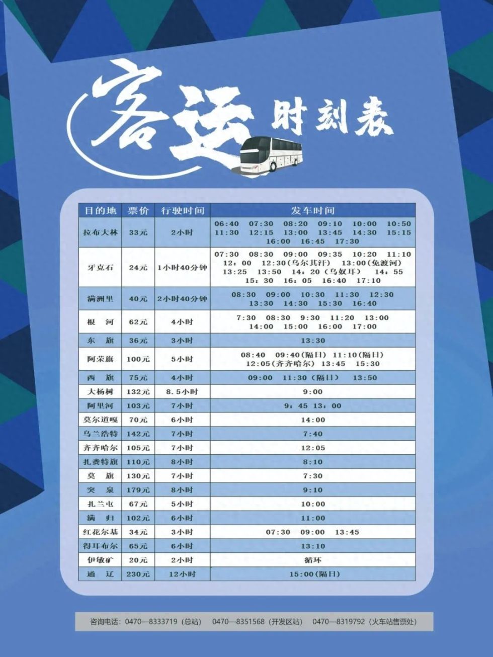 海拉爾長(zhǎng)途客運(yùn)站時(shí)刻表最新調(diào)整