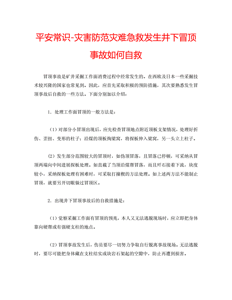 名稱: 災(zāi)害防范災(zāi)難急救發(fā)生井下冒頂事故如何自救 文號(hào):