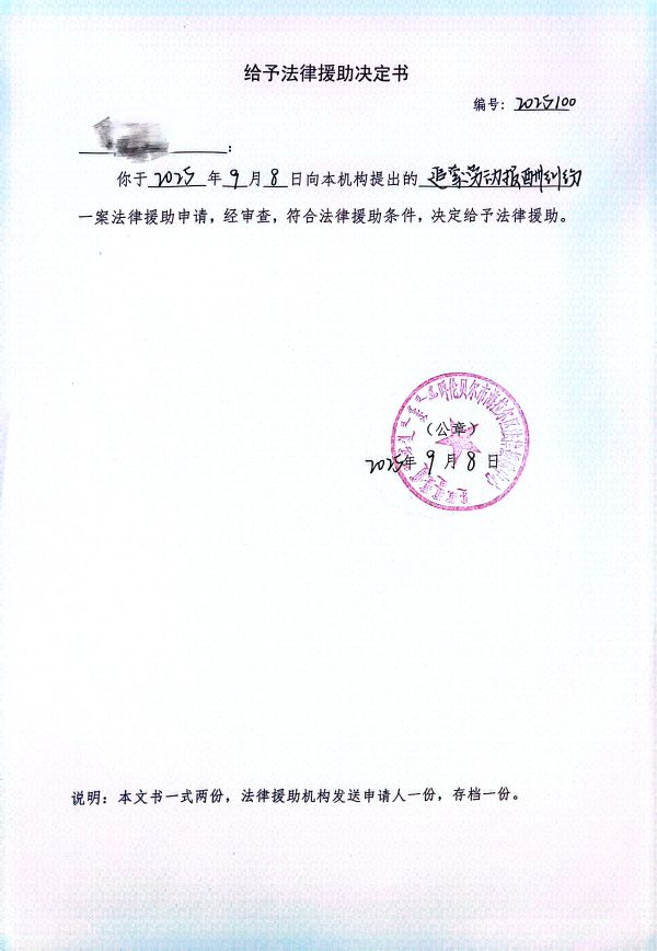 名稱: 給予法律援助決定書(2025.二十八) 文號: