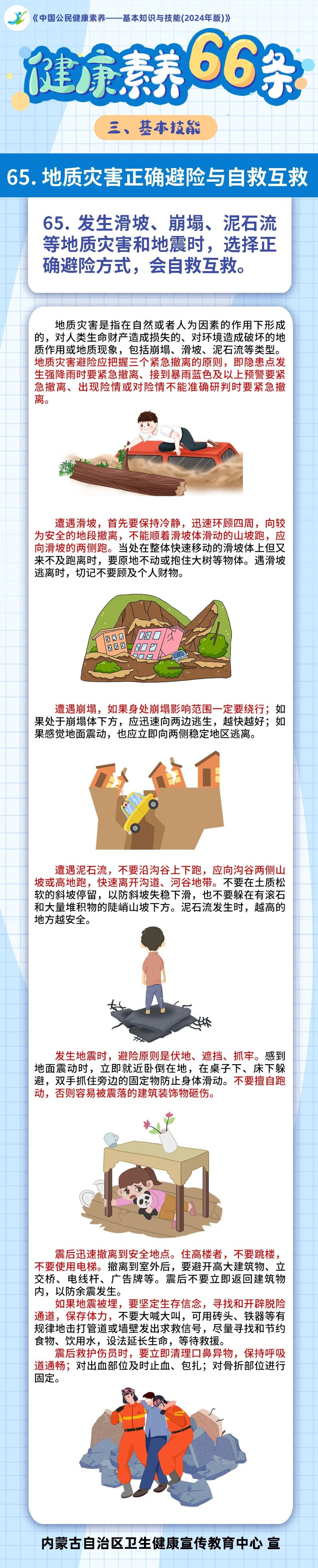 名稱: 【健康素養(yǎng)66條】(65)地質(zhì)災(zāi)害正確避險(xiǎn)與自救互救 文號: