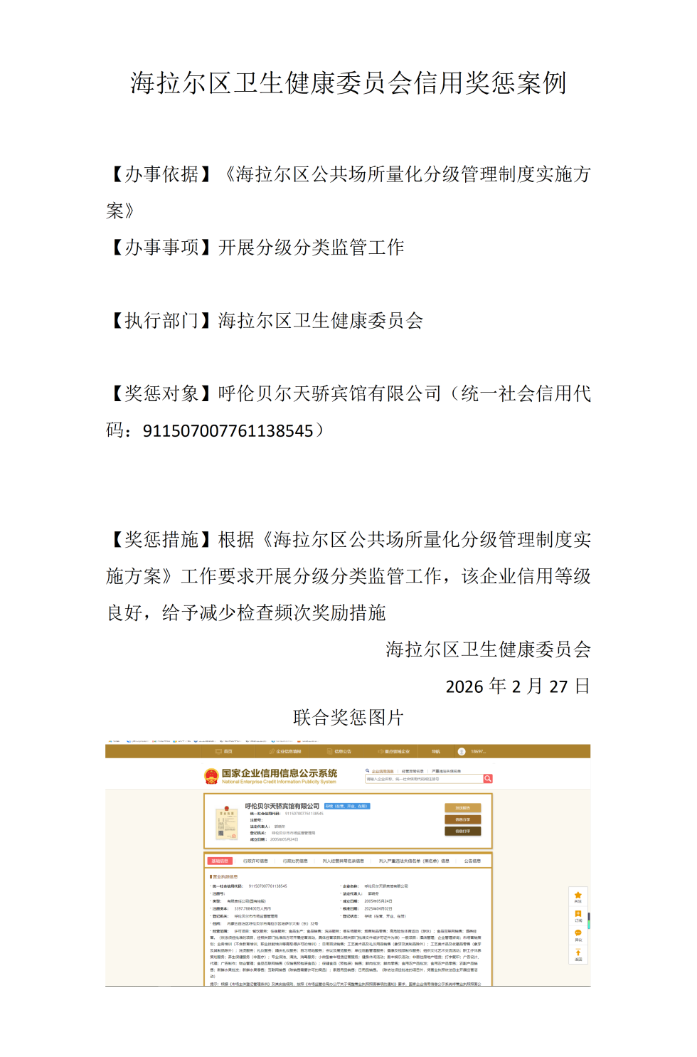 名稱: 2026年2月海拉爾區(qū)衛(wèi)生健康委員會信用獎懲案例 文號: