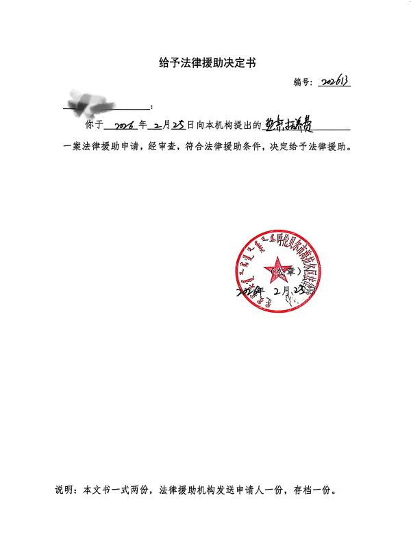 名稱: 給予法律援助決定書(2026.二) 文號(hào):