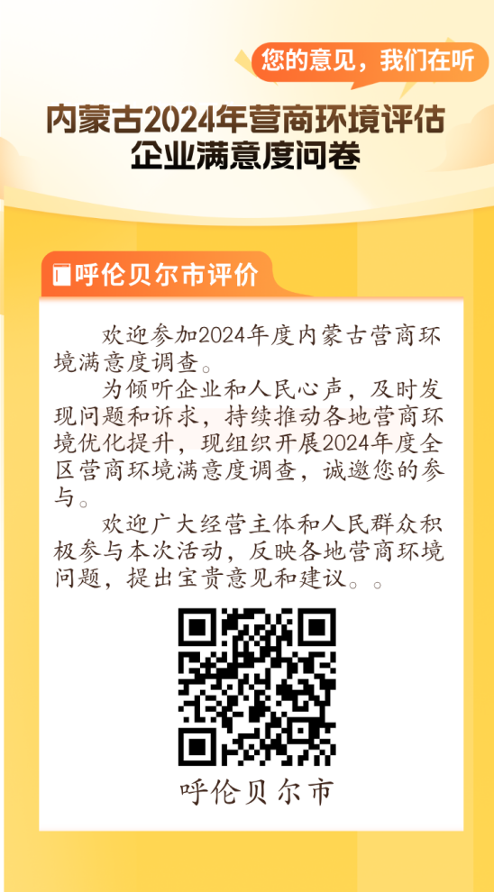 三、本次營商環(huán)境滿意度調(diào)查時間截止至2025年1月5日。各地區(qū)務必堅持經(jīng)營主體和社會公眾自愿原則,積極引導辦事人員掃碼填答問卷參與調(diào)查,堅決杜絕人為干預、弄虛作假等行為。